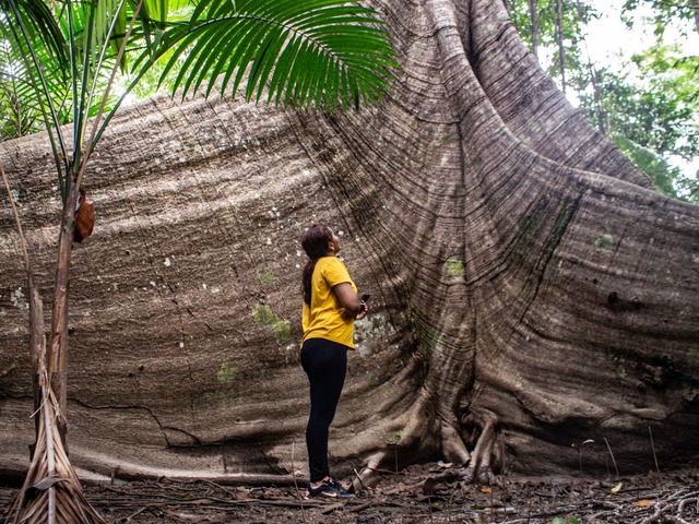 Percorrer a trilha é conectar-se com a Amazônia intocada. São muitas Samaúmas centenárias – algumas com mais de 400 anos. No trajeto é possível tomar banho de rio e, se tiver sorte, apreciar uma revoada de pássaros.