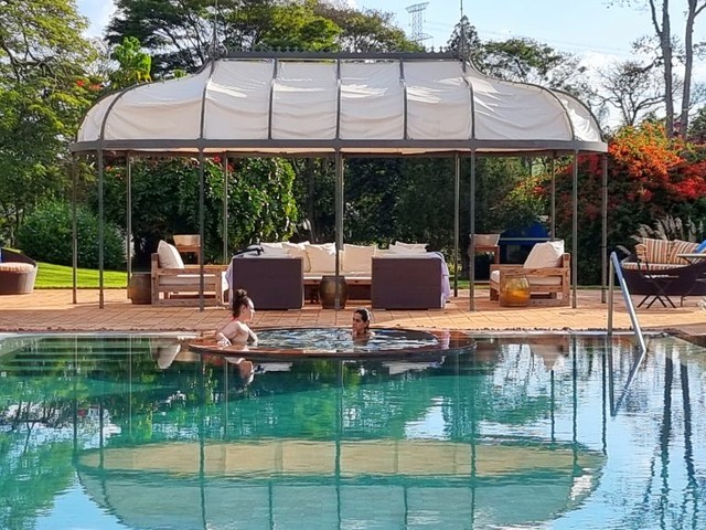 São 15 suítes que acomodam até 20 pessoas no total, e uma ampla varanda, de onde é possível avistar a piscina de borda infinita com hidromassagem e o gazebo. Amenities L’Occitane, cofre, wi-fi, TV por assinatura e ar-condicionado quente e frio completam as instalações.