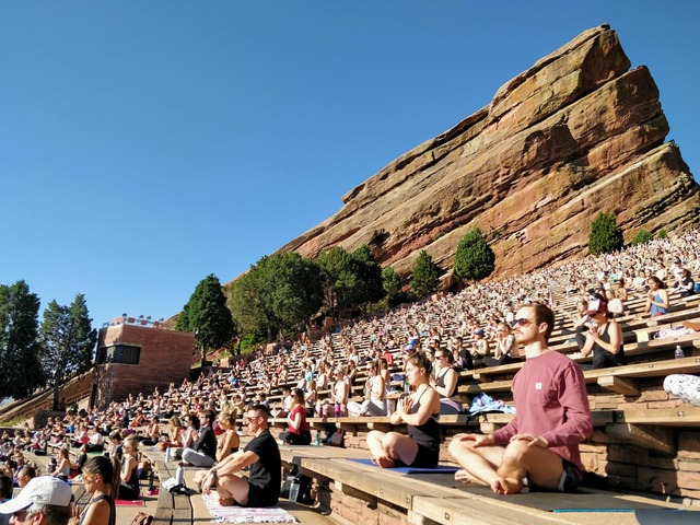 Usado como um anfiteatro natural, com rochas avermelhadas por todos os lados, no meio das montanhas, o Red Rocks Park, a cerca de 30 minutos de carro de Denver, Colorado, oferece uma das melhores experiências de ioga do planeta.