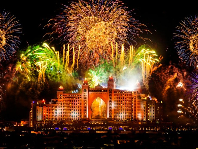 O fim de ano em Dubai é uma festa. Diversos pontos turísticos do emirado, como o Burj Khalifa e o hotel Atlantis, The Palm promovem show de fogos de artifício e colorem o céu da região para celebrar a chegada do novo ano.