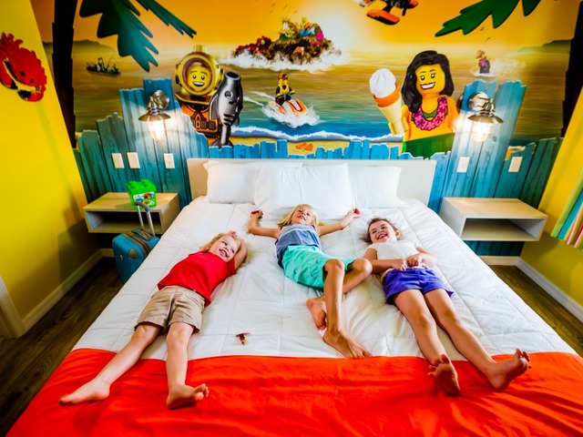 Localizado no complexo Legoland Florida, em Winter Haven, a cerca de 1h30min de carro de Orlando este hotel temático oferece quartos temáticos com beliches, área de jogos e piscina com tema de Lego.