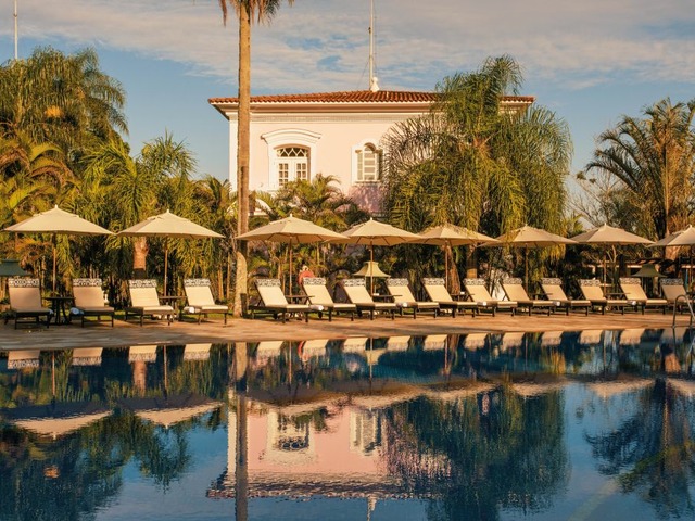 O prédio colonial rosa do Hotel das Cataratas é um charme por fora e por dentro, onde os ambientes exibem elegantes elementos feitos em mármore e madeira escura. Na parte de trás do hotel, os visitantes encontram a piscina e os jardins compostos por árvores exóticas.