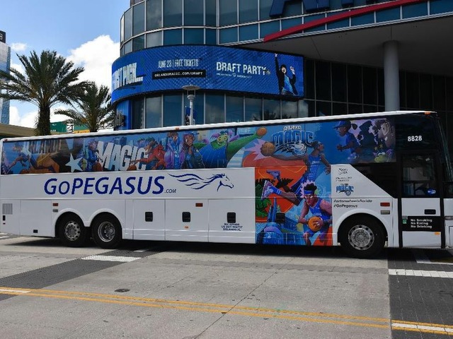 Muita gente não sabe, mas é possível ir de Miami a Orlando de ônibus. E agora esse trajeto ficou ainda mais especial, já que uma das companhias que faz a rota (além de cobrir outros destinos na Flórida), a GoPegasus, uniu forças com o Orlando Magic, time da NBA, a liga de basquete americana, para aplicar artes em seus veículos.