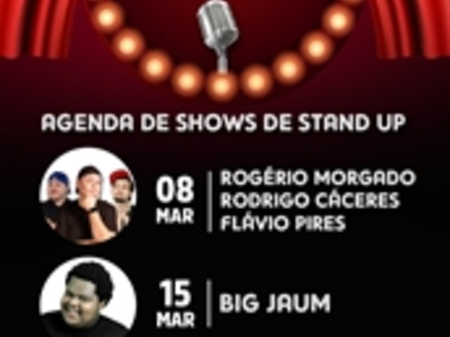 No dia 08, Rodrigo Cáceres, conhecido pela imitação do trapalhão Zacarias, divide o palco com Rogério Morgado e Flávio Pires.