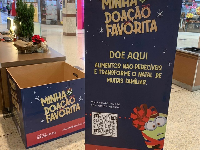 No Campinas Shopping, as doações de alimentos podem ser feitas até o dia 22/12. Caixas de arrecadação já estão disponíveis ao lado do Serviço de Atendimento ao Cliente (SAC).