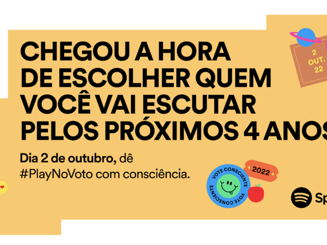 Em continuidade ao movimento “Play no Voto”, iniciado em abril deste ano em incentivo ao cadastramento eleitoral, o Spotify iniciou a segunda fase em incentivo ao voto consciente dos jovens eleitores.