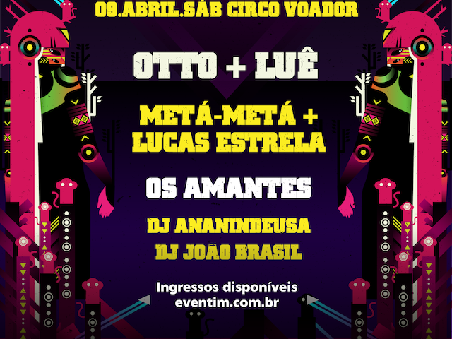 Em seguida, sobe ao palco do Circo o projeto Os Amantes, que junta Jaloo e a banda Strobo e traz ruptura na sonoridade dos artistas dando novos ares aos paraenses. Outro encontro confirmado é o do cantor e compositor pernambucano Otto com a cantora Luê.