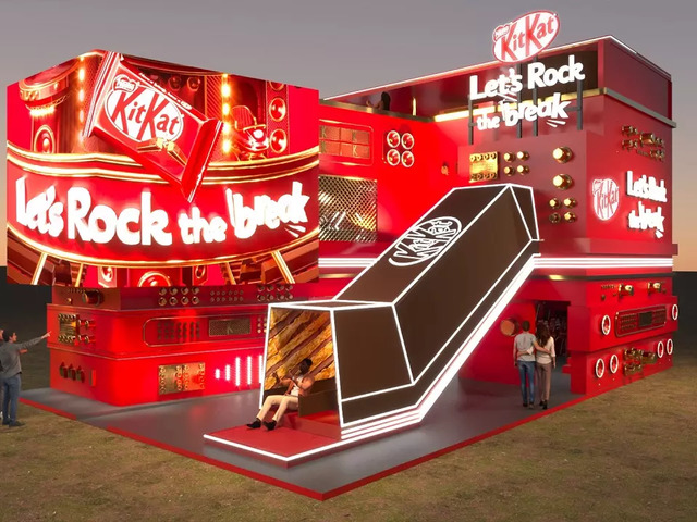 Localizado no gramado próximo ao palco The One, o principal estande se destaca não só pela sua localização estratégica, mas também pelas experiências que oferece. Entre elas, os visitantes poderão se divertir em duas ativações, sendo um escorregador moldado no icônico formato do chocolate e a outra, uma imersão tecnológica através de uma experiência em realidade aumentada, que reproduz um universo de shows, colocando o usuário no palco, como um artista, e interagindo com vários elementos da marca. E para aqueles que adoram brindes, a marca dará pins temáticos do universo de KITKAT® para os participantes das ativações e distribuirá pochetes estilizadas para quem estiver pelo gramado.