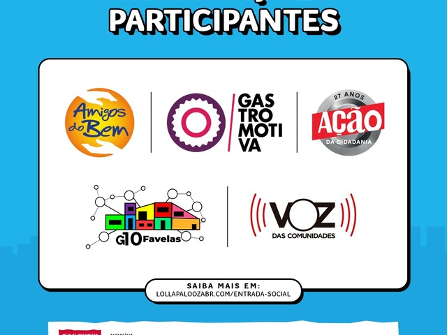 Partindo dessa realidade preocupante, o LollaBR se juntou à Globo — por meio da plataforma “Para Quem Doar” — para realizar uma campanha inédita de combate à fome. Aqueles que doarem R$ 40,00 no ato da compra do Lolla Pass (ingresso válido para os três dias de evento) ou R$ 30,00 na compra do Lolla Day (ingresso válido para um dia de evento) terão um desconto de 45% sobre o preço do ticket. A compra da entrada social, disponível no site (lollapaloozabr.com/tickets – com taxa) e na bilheteria oficial (sem taxa), pode ser realizada até 3 de fevereiro de 2023.
