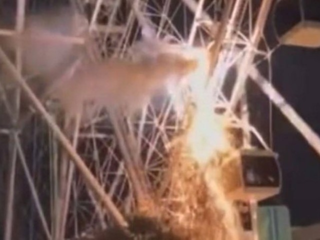 Explosão em roda gigante faz brinquedo travar por horas com 62 pessoas dentro