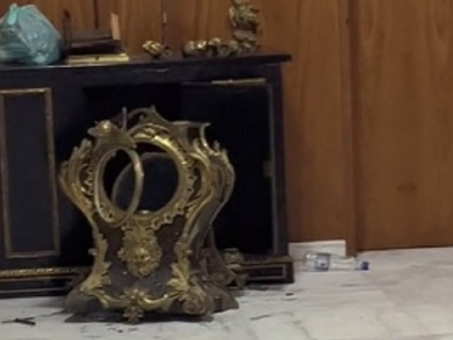 O relógio, que foi um presente da corte de Luís XIV, da França, foi destruído por um homem com uma camiseta com a foto do ex-presidente Jair Bolsonaro. Depois de derrubar o artefato no chão, o terrorista ainda derrubou o armário que sustentava o relógio em cima do mesmo, aumentando o dano.