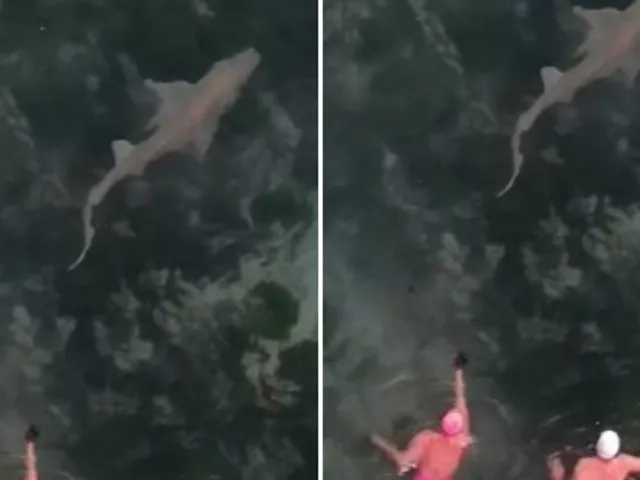 Vídeo assustador mostra banhistas nadando a poucos metros de tubarão: "Coração bater"