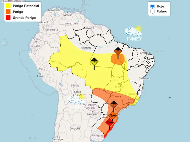 O Instituto Nacional de Meteorologia (Inmet) emite um alerta laranja para perigo, indicando a possibilidade de chuvas intensas acima de 50 mm a 100 mm por dia em todo o estado de São Paulo. A previsão é de que o sol apareça entre nuvens pela manhã, elevando as temperaturas durante a tarde para cerca de 28°C. Os ventos também se intensificam, o que pode ocasionar quedas de árvores e destelhamento de casas.