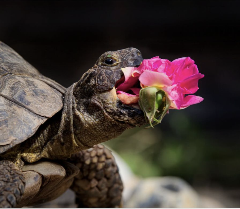 Na categoria "Todas as outras criaturas", o britânico Jonathan Casey foi o vencedor, com uma foto de sua tartaruga, Edgar, comendo uma flor que os donos plantaram para alimentá-la.