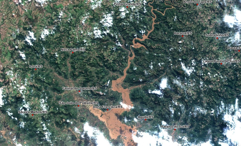 O registro fotográfico do INPE mostra claramente como o curso dos rios Soturno, Jacuí e Jacuizinho foi alterado devido ao volume de água das chuvas, que invadiu as cidades próximas. Nesse cenário trágico, famílias ficaram isoladas com as cheias, resultando em várias mortes, incluindo três na região de São João do Polesine, Silveira Martins e Pinhal Grande.