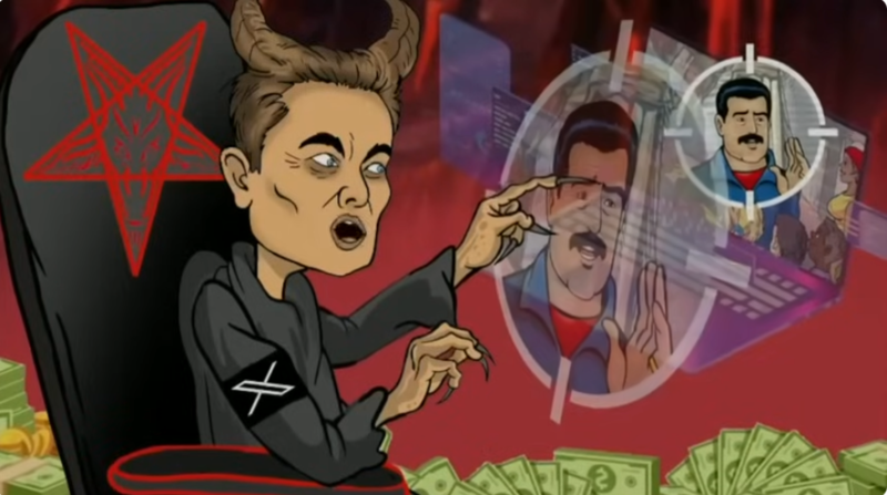 No episódio, Elon Musk é apresentado com cabelo em forma de chifres, longas unhas e sentado em uma cadeira com um pentagrama desenhado. Além disso, o personagem usa uma braçadeira estampada com a logo de sua rede social, X, fazendo uma paródia com um símbolo nazista. Ele tenta realizar uma lavagem cerebral nos venezuelanos através de seu poder nas redes sociais e tecnologia, além de expressar seu desejo de obter as riquezas naturais do país.