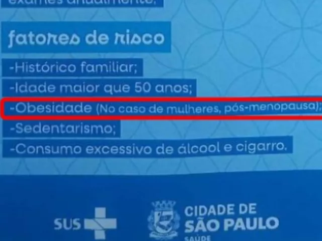 Panfleto da SMS de São Paulo sobre câncer de próstata tem referência a fator de risco para mulheres