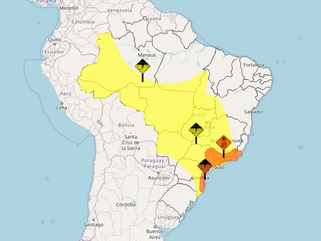 Tempestades com chuva intensa, granizo e rajadas de vento atingiram a Região Sul do Brasil nesta terça-feira (13), de acordo com o alerta do Instituto Nacional de Meteorologia (INMET). O órgão emitiu avisos de perigo e perigo potencial para áreas do Rio Grande do Sul, Santa Catarina e Paraná, vigentes até às 23h59. A previsão indicava volumes de chuva entre 30 e 60 mm por hora ou até 100 mm por dia, além de ventos intensos e possibilidade de queda de granizo.