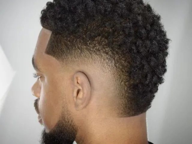 Um corte de cabelo crespo masculino clássico e ideal para quem prefere manter o cabelo mais curtinho. Ele usa um degradê nas laterais e o topo da cabeça fica mais alto, mas ainda assim com um cumprimento baixo. A ideia desse corte é manter o cabelo bem curto.