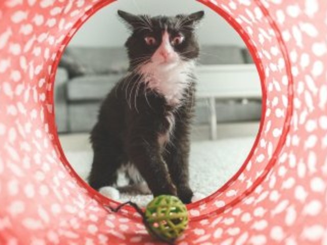 Gatos adoram caixas de papelão e elas podem ser usadas de maneiras muito criativas. Experimente transformar uma delas em uma casinha com buracos pelos lados e também na parte de cima. As caixas também podem ser transformadas em tubos para o seu felino poder explorar e se divertir.