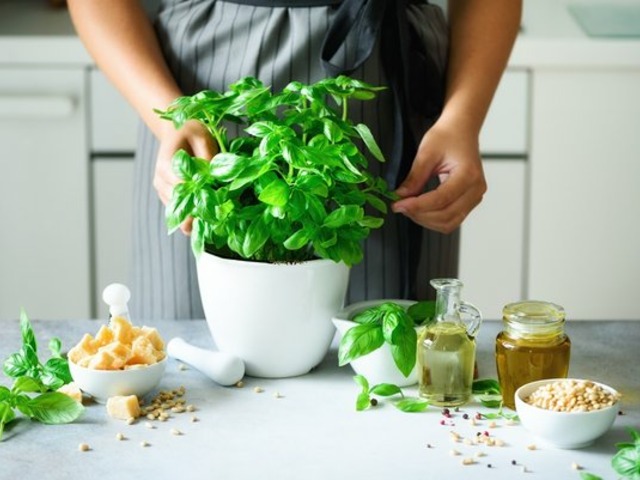 Só de pensar no manjericão tenho certeza que você até imaginou o cheirinho maravilhoso que ele exala. O manjericão é uma planta muito utilizada na culinária devido ao seu sabor único, ao seu charme na finalização de um prato e ao seu grande poder aromático. Ele pode ser inserido no nosso dia a dia por meio de preparações culinárias, como molho pesto, sal de ervas, saladas, sopas, temperos para carnes etc. Também pode ser utilizado em chás e em seus óleos essenciais.