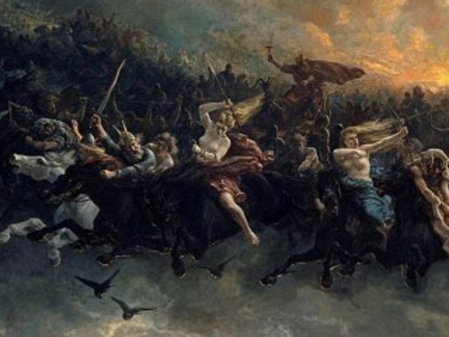 O relato de Hélène Adeline Guerber, de 1895, também menciona Odin liderando uma cavalaria de mortos que traziam tempestades e maus presságios por onde passava.