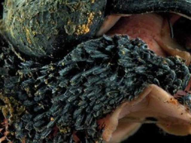 Habitante das profundezas entre 2,4 mil e 2, 9 mil metros, o caracol-do-vulcão (Chrysomallon squamiferum) é um espécime peculiar que retira sulfeto de ferro de seu ambiente para desenvolver uma “armadura” que reveste e protege completamente seu interior macio. Além disso, a criatura se sustenta de bactérias, que são processadas em uma grande glândula que, depois, absorve substâncias químicas como a pirita (também conhecida como ouro do tolo) e gregita, ganhando novas cores e formatos dependendo da região em que vive.