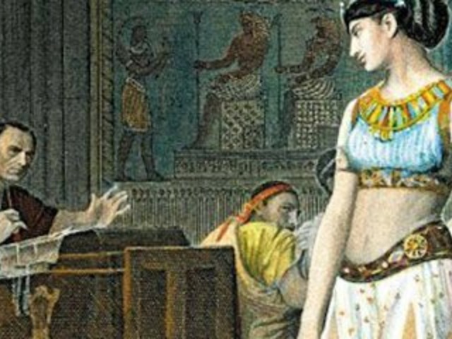 Em 51 a.C., depois que a famosa rainha Cleópatra entrou enrolada em um tapete nos aposentos de Júlio César, ela cativou-o e passou a ter um relacionamento com ele mesmo enquanto estava casada com o irmão dele, Ptolomeu XIV.