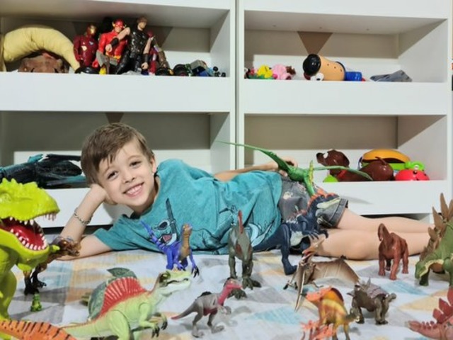 Theo adora brincar com seus dinossauros e ler. (Fonte: Arquivo pessoal)