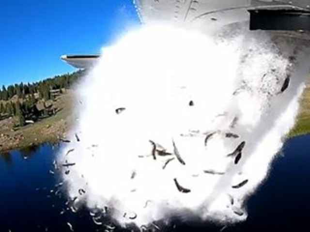 O vídeo, divulgado pelo órgão ambiental do estado americano no Facebook, mostra tripulações transformando uma pequena aeronave em um verdadeiro aquário, com milhares de alevinos, peixes recém-nascidos, que são depois derramados de uma rampa, sobre uma região com mais de 200 lagos em Utah.
