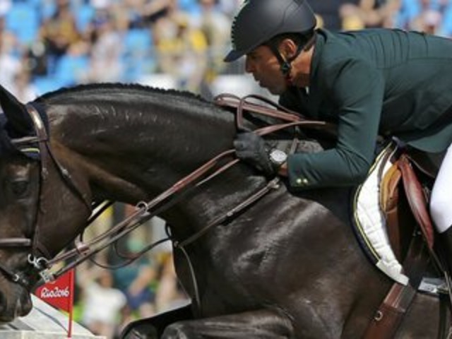 A estrela do hipismo brasileiro, Edgar, e seu humano Marlon Zanotelli podem trazer medalha para o Brasil (Imagem: Folha de São Paulo/Reprodução)
