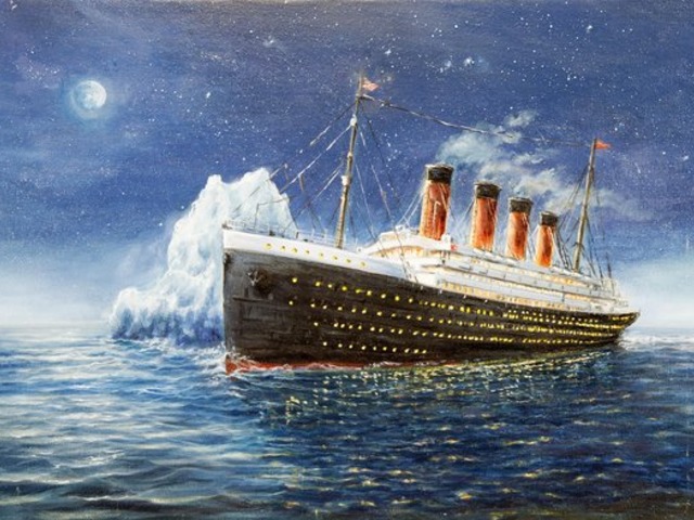 O impacto do RMS Titanic contra o iceberg no Oceano Atlântico Norte aconteceu às 23h40, enquanto se direcionava a Nova York. Foram necessárias 2 horas e 40 minutos para que o navio afundasse por completo nas águas geladas. Das 2.240 pessoas que estavam a bordo, mais de dois terços acabou sucumbindo devido ao acidente.