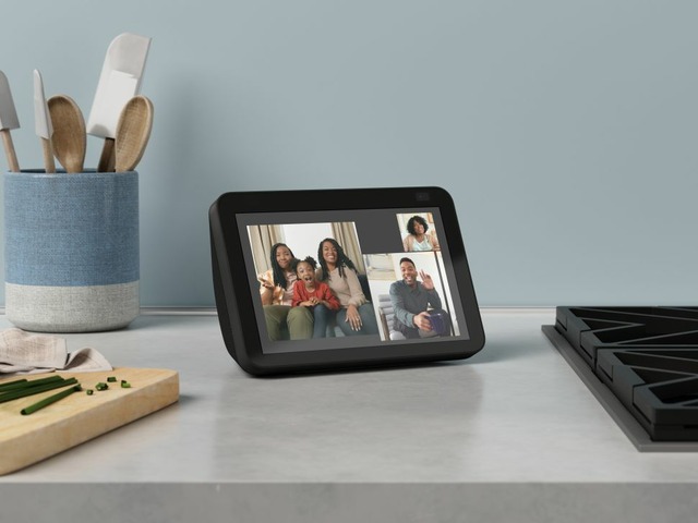 A câmera enquadra e conta com zoom automático durante as videochamadas, para que todos permaneçam no centro da tela. Basta pedir para fazer chamadas de vídeo para dispositivos Echo com tela ou pelo aplicativo Alexa.