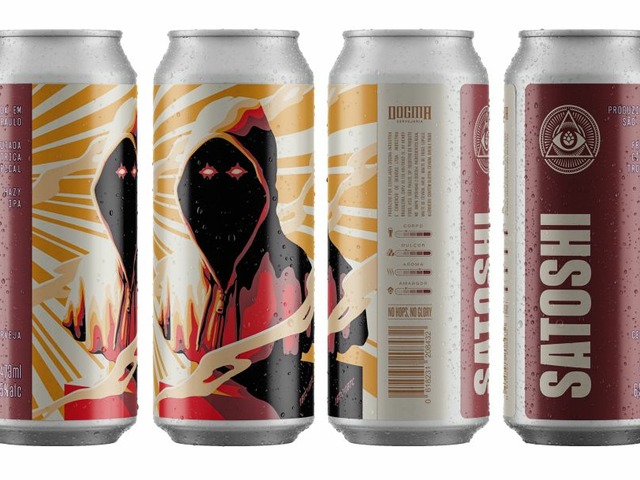 Ilustrado por Leandro Dexter, o rótulo enigmático da Satoshi Hazy IPA é representado por uma pessoa com capuz, de modo a tornar impossível seu reconhecimento. Além disso, o estilo escolhido para homenagear figura tão enigmática não poderia ser outro, uma vez que Hazy em tradução literal do inglês significa nebuloso. Isso se dá ao fato de sua turbidez.