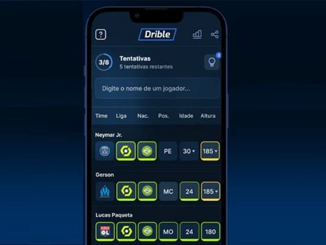 A cada novo palpite enviado, o Drible indica o quão perto o usuário está de acertar de acordo com clube, liga, nacionalidade, posição, idade e altura do jogador sorteado.