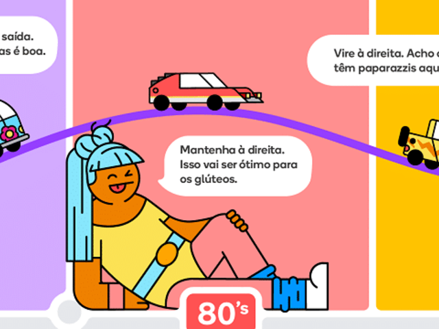 6. Por fim, em “Instruções por voz”, os motoristas podem optar pela locução de um DJ dos anos 70, uma professora de aeróbica dos anos 80 e uma diva pop dos anos 90.