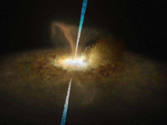 O segundo motivo desse alto brilho são os jatos. Antes da matéria cair no buraco negro e ser absorvida, ela pode ser ejetada violentamente, na forma de um jato. Esse jato possui energias altíssimas que podem influenciar a evolução da galáxia com um todo.
