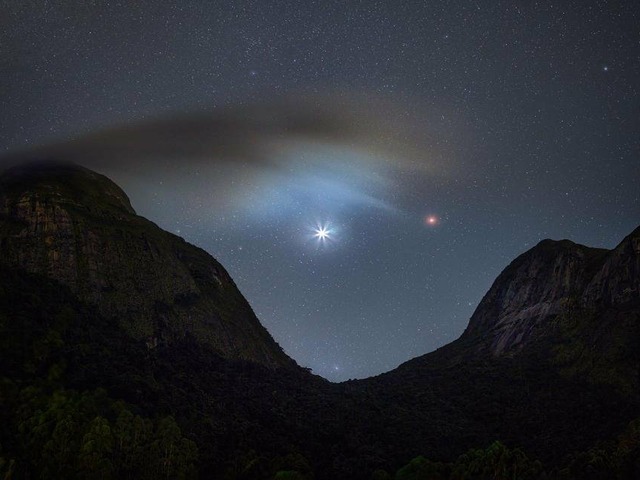 Segundo a agência espacial, a foto tirada no dia 04 de março em Teresópolis — região serrana do Rio de Janeiro — mostra os dois planetas alinhados a partir de uma diferença de 4 graus no ângulo de suas órbitas ao redor do Sol. Vênus aparece com o auge de seu brilho, à esquerda, enquanto Marte surge como o ponto vermelho, à direita. Confira!