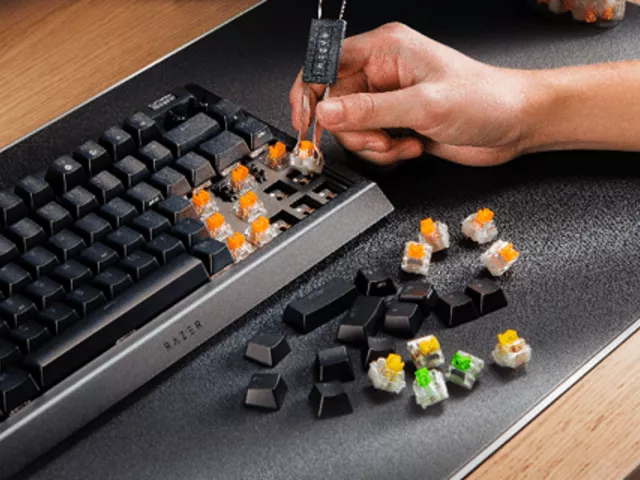 Para completar a montagem personalizada, os usuários podem escolher entre os modelos de switches mecânicos da Razer de 3ª Geração, que são vendidos separadamente em pacotes de 36 unidades. As opções incluem os icônicos switches verdes com clique tátil, os amarelos para digitação suave e linear, e os laranjas para quem prefere feedback tátil e sem o clique audível. O kit de keycaps Razer Phantom para upgrade, disponível em preto e branco, complementa as possibilidades de personalização do visual e potencializa os efeitos de iluminação RGB do teclado.