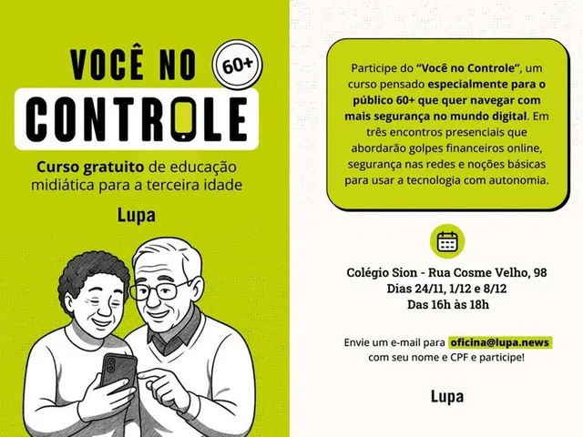 Com uma proposta acolhedora e prática, o Você no Controle reforça o compromisso da Lupa em democratizar o acesso à informação, fortalecer a educação midiática no país e aproximar diferentes gerações da tecnologia com mais segurança e autonomia. Esta edição marca apenas o início do programa: novas turmas serão abertas em outras cidades ao longo do ano que vem, ampliando o alcance da iniciativa.