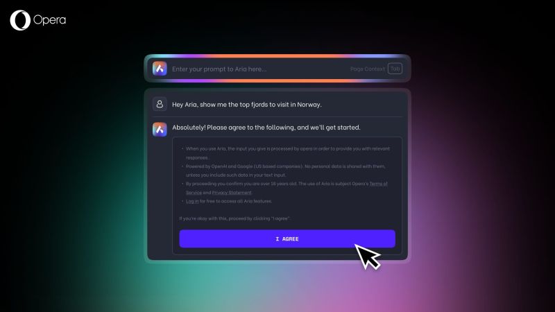 A Opera anunciou que a IA integrada do seu navegador, a Aria, agora está disponível para todos os usuários, sem a necessidade de criar uma conta. Anteriormente, era necessário fazer login para acessar os recursos da ferramenta.
