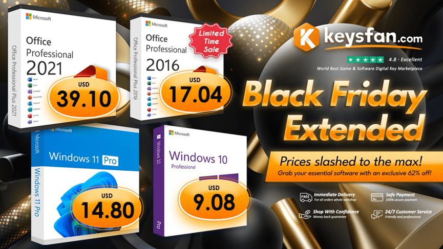 As promoções de Black Friday Estendidas chegaram – e a Keysfan tem ofertas imbatíveis em licenças vitalícias para Microsoft Office e Windows OS. Os preços partem de US$ 10.