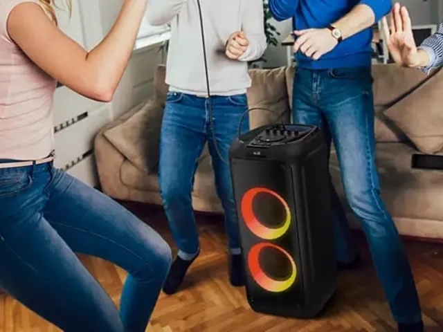 Equipada com a função Party Light, proporciona uma atmosfera vibrante com luzes que se movem no ritmo da música, elevando a energia da festa. Além disso, conta com rádio FM, entrada para microfone e guitarra e oferece a opção de gravação em dispositivo USB ou cartão SD para capturar momentos especiais.