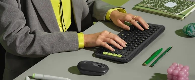 O teclado, sem fio, proporciona uma experiência de digitação otimizada por meio de atalhos de produtividade inteligentes, em um design de destaque elaborado com teclas suaves e de baixo perfil, que foram projetadas para uma digitação mais precisa, confortável e silenciosa. O POP Icon Keys conta com troca rápida de dispositivos e possibilita uma quantidade ampla de configurações através do aplicativo Logi Options+.