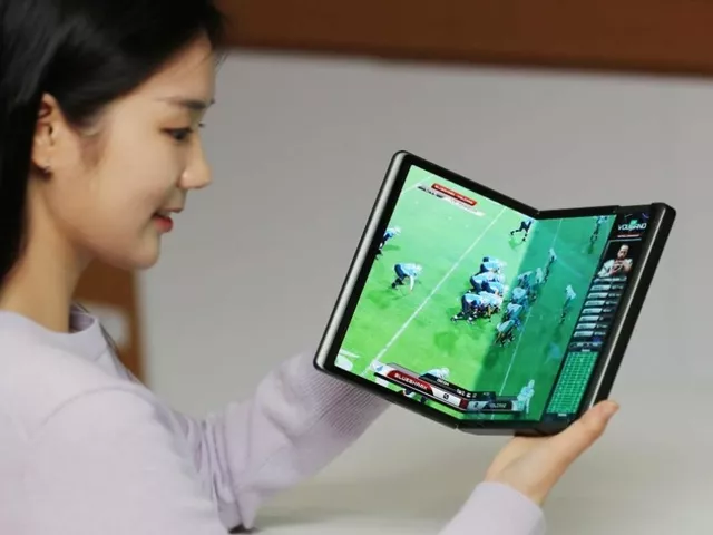 A tecnologia inclui o uso de uma única tela feita com vidro ultrafino que se dobra para frente e para trás, permitindo a visualização de conteúdos em qualquer um dos lados. Quanto aberto, o display com resolução HD+ tem 6,7 polegadas, que se transforma em dois menores ao ser dobrado.